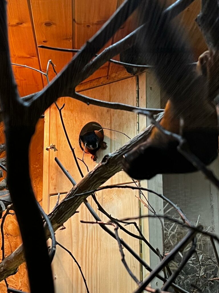 Samice porodila mláďata v hnízdě v jedné z budek, které mají veverky k dispozici ve vnitřní expozici. Oba rodiče byli přítomní po celou dobu odchovu, který probíhal bez zásahů ze strany chovatelů.